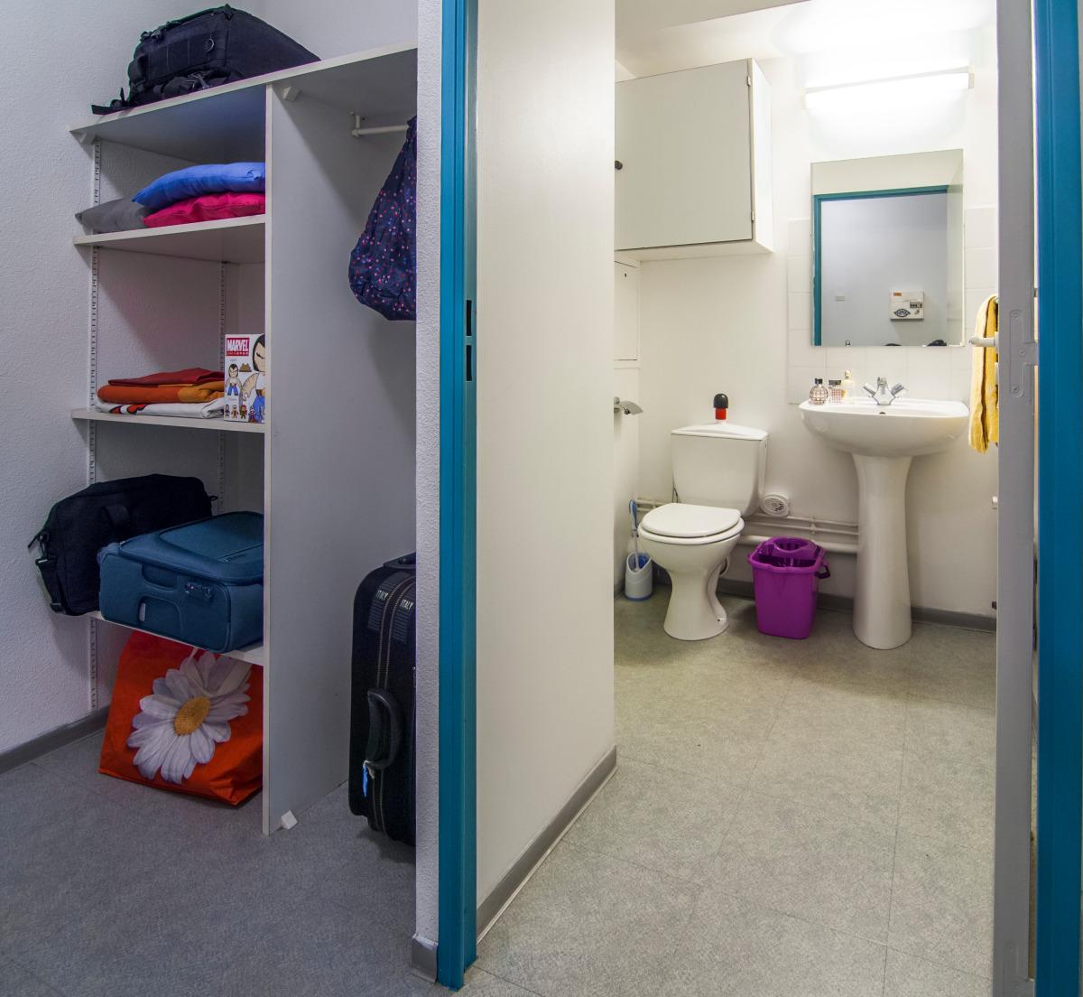 Equipement : kitchenette, évier, réfrigérateur, plaque de cuisson | Sanitaires : lavabo, douche, WC | Mobilier : lit une place, bureau, table, chaise, placard | Installations : prise téléphone, prise TV, accès internet wifi inclus