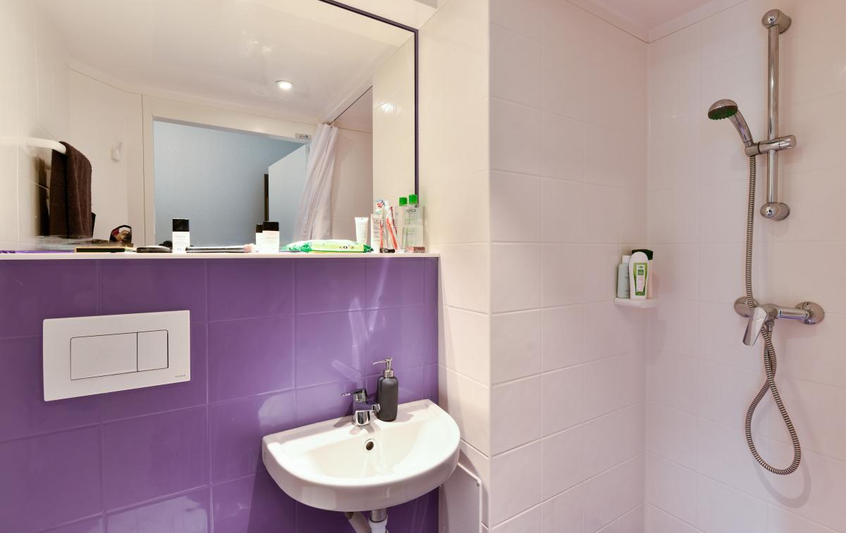 Equipement : réfrigérateur individuel, évier, plaque de cuisson | Sanitaires : lavabo, douche, WC | Mobilier : lit une place, bureau, chaise, placard | Installations : accès internet